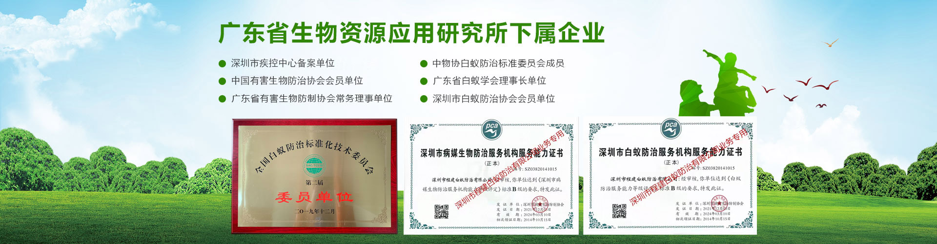 專注于徹底根治、防治結(jié)合,售后跟蹤服務(wù),專業(yè)服務(wù)工程師有豐富實(shí)戰(zhàn)經(jīng)驗(yàn)超過十年。持有專業(yè)資格證書認(rèn)證:“有害生物防制服務(wù)機(jī)構(gòu)服務(wù)能力證書B級”、“白蟻防治服務(wù)機(jī)構(gòu)服務(wù)能力證書B級”所有員工持有“深圳市白蟻防治上崗證”和“深圳市除蟲滅鼠上崗證”,雙資格證上崗服務(wù)。榮獲過:“優(yōu)質(zhì)服務(wù)示范單位”、“白蟻防治服務(wù)信譽(yù)AAA級單位”、“深圳市白蟻防治先進(jìn)單位”、“深圳市十大白蟻防治品牌”、“深圳市殺蟲公司”、“深圳市消殺公司”先進(jìn)單位等榮譽(yù)。